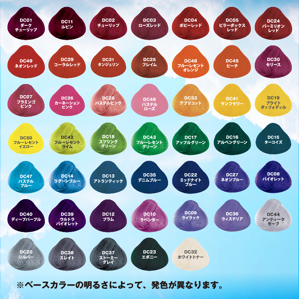 放置時間、塗布量によりカラーの発色、持続性がかわり、事前に髪を明るくしておくことでより綺麗に仕上がります。