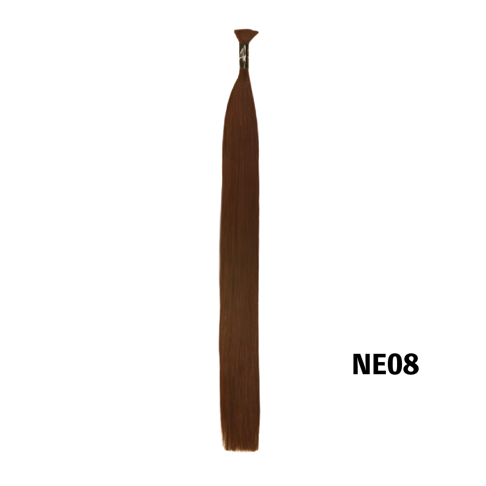 人毛に近い質感を再現したファイバーと人毛のMIX毛。洗髪後でも、うねりにくい70cmストレートヘア。
