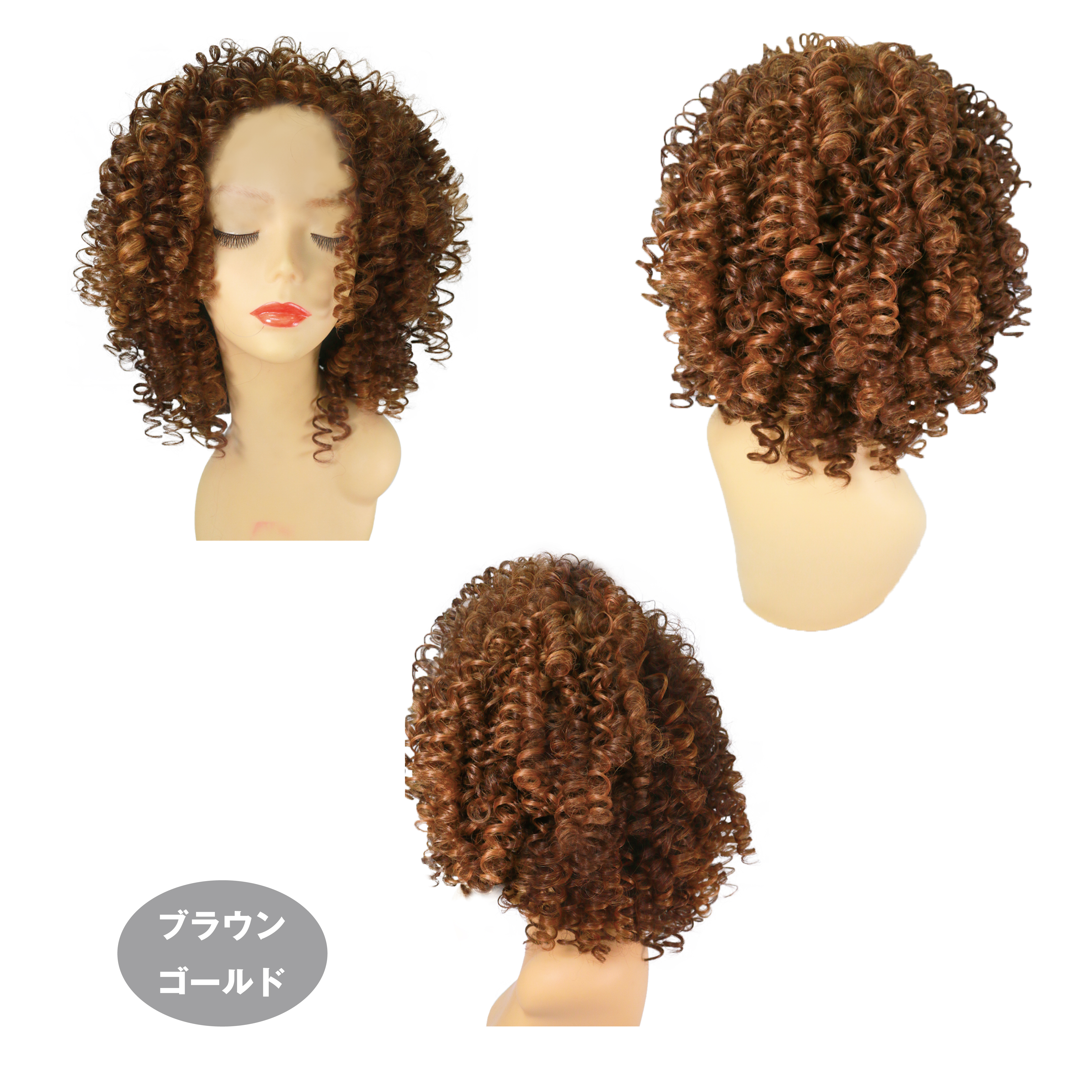バウンシーなカーリースタイル。全体的に長めのカールでカット、アレンジ自由自在。ウィッグ内側のフロントと襟足にコーム付き。