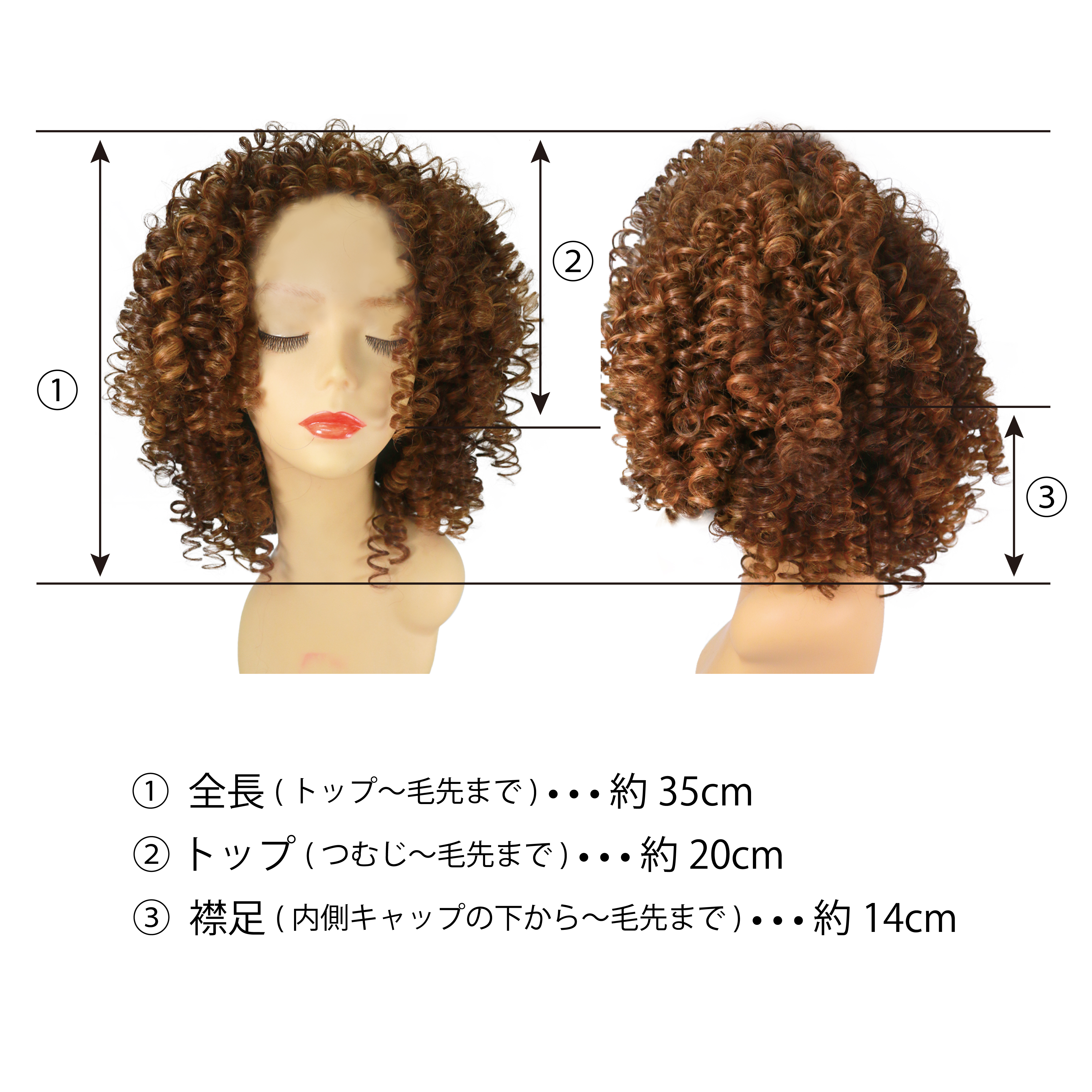【サイズ】全長:約35cm トップ:20cm 襟足:約14cm